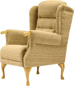 Upholstered in rich fabric and thick padded pocket sprung seat cushions with comfortable side armrests this chair is for excellent comfort and support, and incredibly durable for many years of use.