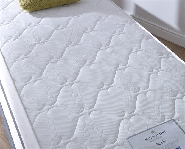 Fully turnable open coil mattress with layer of pressure relieving memory foam, all wrapped in a cooling micro-quilted cover.