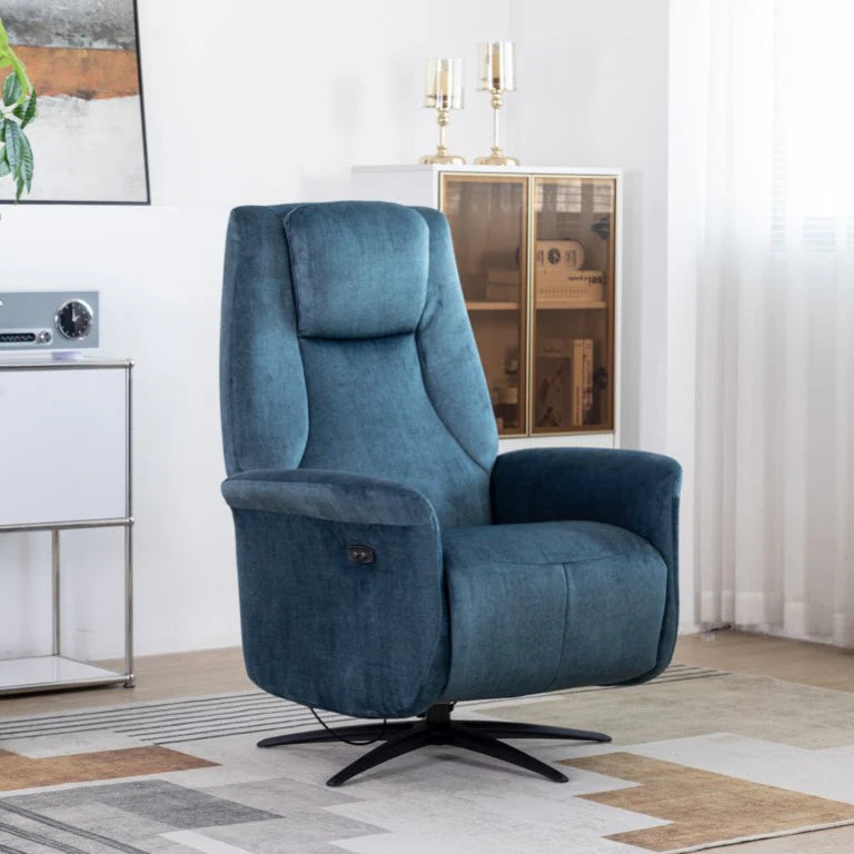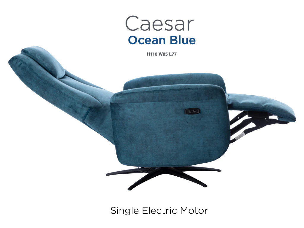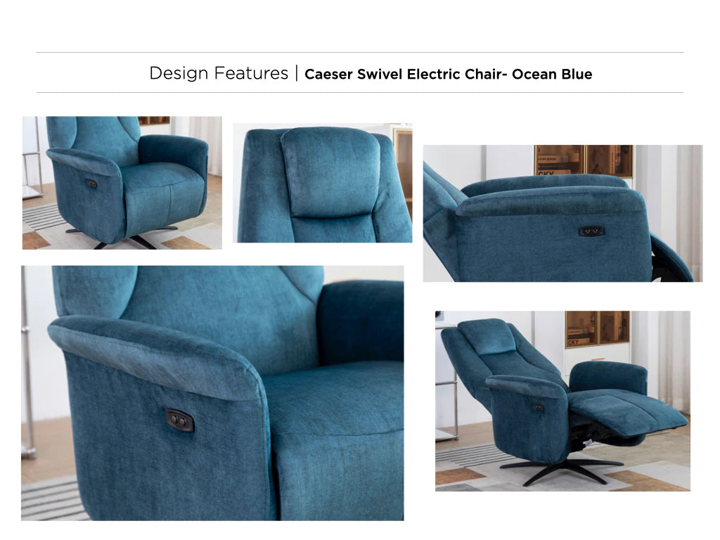 The Caesar Electric Swivel Lounge Chair combines sophisticated functionality with luxurious comfort. Powered by a single motor electric reclining system, this chair offers smooth, precise positioning through intuitive button controls.