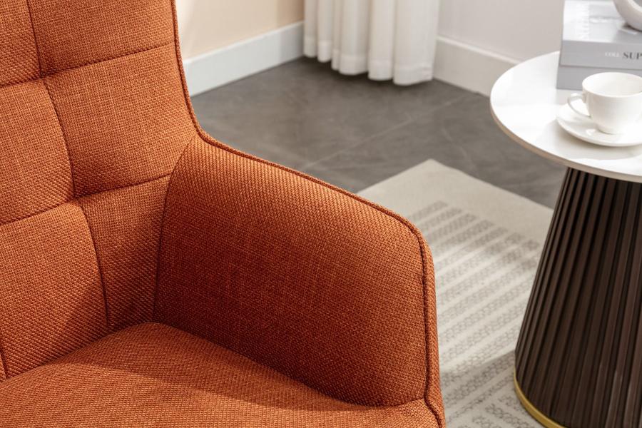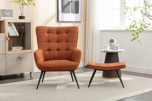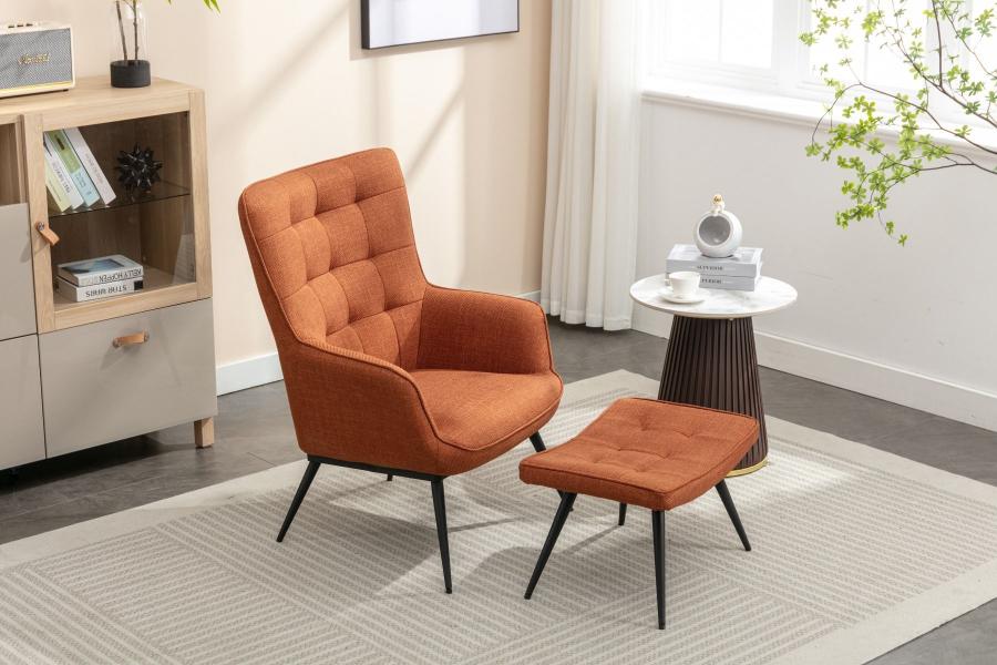 The Copper Accent Chair with Matching Footstool is the perfect blend of minimalist design and luxurious comfort, making it a standout addition to any living space. Featuring elegant button back details, this chair offers a touch of classic charm while maintaining a sleek and modern aesthetic. The set is supported by sturdy black metal legs, which provide a stylish contrast and ensure lasting durability.