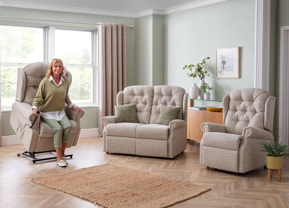 The Hollingwell range offers a stylish look, with a high back and softer arm detail for extra comfort. Along with a innovative powered headrest and lumbar support options for all 3 chair sizes and powered settees.