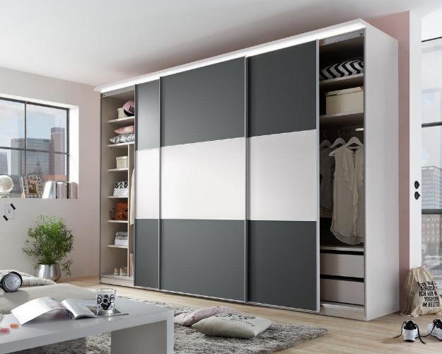All INCLUDO wardrobes have a high-quality interior finish with a Texline decor. The 2 or 3 sliding door wardrobe range is equipped with an extremely practical T-division and a drawer insert with two drawers(with soft close). The smooth slide of the INCLUDO sliding doors is comfortably damped by an integrated damper set.