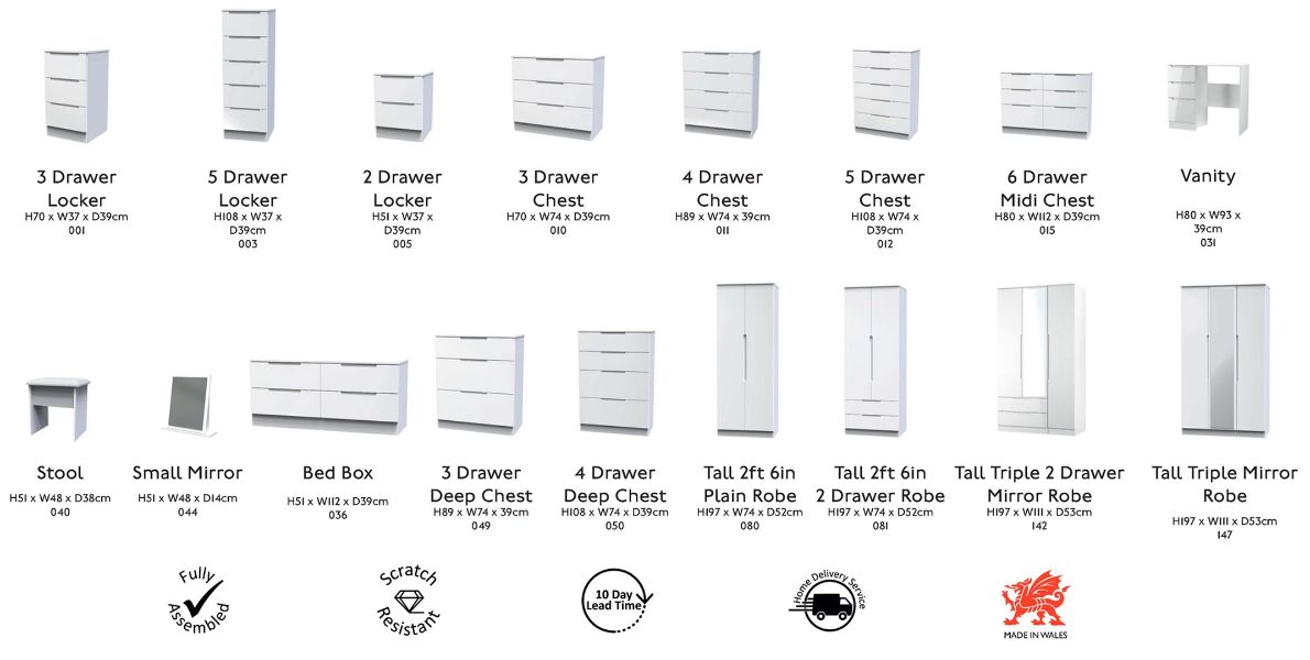 | Tall 2ft 6in 2 Drawer Robe | 74 | 197 | 52 |